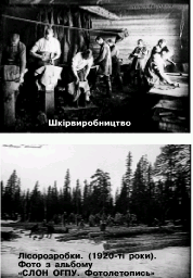 Частина табірного контингенту гнула спину на лісозаготівлях, де були потрібні раби з кінською працездатністю. Харчування було жалюгідним: баланда з голів тріски, хліб, окріп. На Соловках працювали заводи — цегельний, лісопильний, шкіряний, гончарний, механічний, вапняно-алебастровий, салотопний, дріжджовий — та кілька майстерень (пошивна, бондарна, канатна, столярно-меблева). В'язні працювали також у хутровому й сільському господарстві, кустпромі, йодпромі, друкарні, на торфорозробках, полювали звіра, ловили рибу.