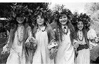 ЗЕЛЕНА НЕДІЛЯ![]() Зелена неділя (Трійця) — одне з найбільших літніх свят. За народними віруваннями праслов’ян, в цей час проводжають весну, та зустрічають літо. Основним елементом християнської Трійці є поминання померлих родичів на Клечану суботу, Трійцю, понеділок (другий день Трійці). Три перші дні троїцького тижня звуться «Зеленими Святами». Зелений тиждень починається з черверга. Зранку в четвер дівчата готують яєчню, печуть пироги та йдуть в ліс плести вінки з квітів (полину, незабудок, чебрецю), а в деяких місцевостях завивати березку: “Ой, зів’ю вінки та на всі святки, Ой, на всі святки, усі празднички…” На Трійцю повертаються в ліс на те ж саме місце розвивати вінки, які виплели на всіх родичів та свого нареченого. Дівчата уважно розглядали вінки, ворожили, розвиваючи їх. Зав’ялі вінки кидали у воду, якщо вінок пливе — буде дівчині та її батькам щастя, здоров’я, а як потоне — бути біді. Під час Зелених свят, за народними віруваннями, прокидаються мерці, з води на берег виходять русалки. Вшанування померлих родичів, їх умилостивлення сприяє збільшенню урожаю, покращенню добробуту живих. Шанування культу пращурів на Зелені свята в різних регіонах має свої локальні відмінності. На Поліссі померлих родичів поминали в Клечальну суботу. Традиційними вважались сім страв, серед яких обов’язковим було коливо — жертовна їжа для померлих родичів. Сім страв за кількістю днів тижня: «В Записках з Рівненького повіту, заховалась інтересна пам’ять про ритуальну трапезу з семи страв у суботу під Зелені свята, на честь «дідів», померлих предків». На Поділлі поминали родичів в Святу неділю. Вранці в неділю одружені сімейні пари відвідували місця поховання своїх родичів, «розмовляли з померлими», запрошували до себе, пригощали їжею. Страви готували великодні. Наступним етапом зеленонедільних поминок було влаштування співів, плясок, штучних боїв: «… Се таким чином факт інтересних українсько-балканських стичностей як ім’я коляди, так і назва русалій для святої неділі, що зветься русальною у нас в ХІІ в., являється таким документом. Зміст поминального свята був, правдоподібно, даний старою нашою традицією, але ім’я принесли балканські запозичення. Чи докинули вони чогось і до змісту свята — це вже трудніше сказати, цей гамірливий характер його, сполучення з представленнями і продукціями «скоморохів», з перегонами, виступами перебійців і подібне, могли бути в такій же мірі дані свійськими похоронними звичаями, які доповнені впливами балкано-романськими» . До останнього часу зберігся звичай до Трійці прикрашати житлове приміщення клечальним зіллям та квітами, а підлогу папороттю чи татарзіллям. В суботу до схід сонця молодиці йдуть в ліс рвати зілля чебрецю, полину, а ввечері починають «маїти» хату гілками та квітами. В хліву та місцях, де ночує худоба ставлять гілки зеленої осики: «Гілля й молоді деревця, зрубані в цей день для оздобу двору й хати називались клечанням, а весь тиждень перед святою Тройцею, — клечальним, зеленим або русальним». За часів прийняття християнства цей звичай увійшов в побут: церкви прикрашають квітками та гілками дерев, а Зелена Субота вважається поминальною. Клечальне зілля після свят не викидають, його затикають за образи і використовують протягом року від хвороб, зглазу, нечистої сили. До початку ХХ ст. н