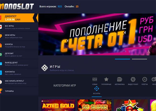 Онлайн-казино Монослот — яркий прорыв в гемблингеАзартные жители Украины выбирают казино Монослот как самый безопасный и надежный ресурс для игры. Здесь игровые автоматы доступны 24/7, для их запуска не обязательна регистрация. Благодаря широкому ассортименту каждый сможет подобрать для себя интересный слот. В казино Монослот игровые автоматы доступны бесплатноДемоверсии — возможность играть в любимые слоты бесплатно. В этом заведении все эмуляторы, размещенные в каталоге, доступны для бесплатной игры. Для активации режима не требуется регистрация и выполнение сложных действий. Достаточно лишь посетить официальный сайт, рассмотреть варианты и выбрать оптимальный. Также от гемблеров не потребуется депозита, а значит все риски сведены к минимуму. Бесплатные игры стоит выбрать по множеству причин: