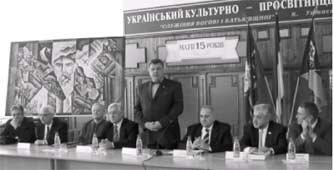 не доларів, а чесного життя, національного відродження і поваги до нації. Українцям доведеться ще довго боротися за свою незалежність і свої права. Національна хвиля, яка піднялася кілька місяців тому, — це лише початок нашої тяжкої боротьби. І тому я дякую всім, хто зібрався сьогодні у цьому залі, і бажаю нам усім сили й незламності у відстоюванні свого чесного, вільного, культурного і національного життя», —сказав народний депутат України, голова Всеукраїнського об'єднання «Просвіта» ім. Т.Г.Шевченка, поет Павло Мовчан. Він поставив підпис і пообіцяв зробити усе для плідної співпраці з Академією.
