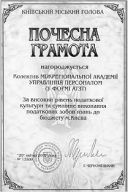 ![]() За чесність — подякаУ п’ятницю, 20 квітня, о 17.00 в Колонній залі мерії сто найактивніших платників податків Києва за підсумками 2006 року отримали нагороди від Київського міського голови Леоніда Черновецького. Серед нагороджених — Міжрегіональна Академія управління персоналом. Столичний голова особисто подякував організаціям, які зробили найбільші відрахування до міського бюджету.[ читати далі... ] Знову про підробні дипломиНіка Костенко Пропонуємо читачеві третю, заключну, частину епопеї під назвою «Фальшиводипломники». У попередніх двох її частинах ми розповіли, виходячи з власної інформації та аналізу чинного законодавства, про головних дійових осіб схеми, що називається «виробництво документів про освіту». У заключній розповімо про найважливіший її інструмент — інформаційно-виробничу система «ОСВІТА».[ читати далі... ] Актуально