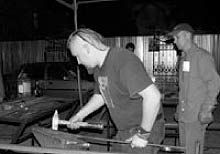 «Залізний лев» вийшов на вулиці Львова На три дні Львів став центром художнього ковальства. 12–14 жовтня у нашому місті відбувався Перший Всеукраїнський ковальський фестиваль «Залізний лев—2007». Львів зустрічав митців з усіх регіонів України, а також з-за кордону: Італії, Голландії, Білорусі. Саме від Гільдії ковалів Білорусі місто в подарунок отримало маленьку ковану лавочку для дітей. 1998 року було засновано Галицьку асоціацію ковалів. Це була перша спроба об’єднати ковалів Львова у спільний цех. 1996-го у Львові проводилися ковальські форуми під назвою «Ковальська імпреза». На жаль, Асоціація припинила своє існування. Тому декілька ентузіастів у лютому 2005 року утворили відділення Спілки майстрів ковальського мистецтва України у Львівській області, аби популяризувати ковальське ремесло, зберегти, розвивати та примножити культурні традиції Львова та України «Ми хочемо відродити традицію щорічного проведення ковальських фестивалів у місті Лева, — говорить голова оргкомітету «Залізного лева—2007» Орест Івасюта. — Хочемо, аби Львів став ковальською Меккою, хоча в ньому і немає стільки сировини для виковування, як на Сході Україні, однак не гроші та індустрія є важливими, пріоритетом для нас є люди». Подивитися городянам та гостям міста протягом трьох днів таки було на що. Ініціативні та мужні хлопці з ЛОГО «Товариство Залізного Лева», а це Антон Парамбуль, Святослав Лев, Юрій Севериненко, Роман Серединський, Іван Борисяк, Ростислав Шмагало та Емілія Сидор, підготували глядачам чудову культурну програму, а для гостей та учасників фестивалю — можливість поспілкуватися та обмінятися творчими знахідками. Та не лише обмін досвідом був головною метою проведення фестивалю. За словами Ореста Івасюти, найважливішою метою «Залізного лева» є популяризація культури ковальства. Особливої уваги потребують старі будинки, в архітектурному ансамблі яких є ковані конструкції. «Потрібно дотримуватися певних правил, аби всі елементи пасували до стилю будівлі. Встановлення решітки, що не пасує за стилем до будинку, — це похід до театру в дорогих кросівках», — наголошує він. Родзинкою цьогорічного «Залізного лева» стало створення ковалями Львова у подарунок місту кованої лавочки для закоханих. Цей витвір мистецтва заслуговує на особливу увагу не лише закоханих, а й мистецтвознавців, адже, за твердженням гостей фестивалю з білоруського Бресту та італійської Сицилії, вона є справді маленьким шедевром. Два кованих леви, які тримають у зубах саму дерев’яну лавочку, ніби стоять на варті спокою закоханих. Як каже директор департаменту гуманітарної політики Львівської міської ради Олексій Побурко, міські райці знайдуть достойне місце для її встановлення. «Львів — це справді місто закоханих, тому лавочка знадобиться всюди», — впевнений пан Побурко. Це може бути оглядовий майданчик у парку «Високий замок» або ж площа Музейна біля собору пресвятої Євхаристії. До речі, Олексій Побурко впевнений, що наступного року фінансування Львівською міською радою «Залізного лева» суттєво збільшиться. «Якщо з «Товариства Залізного Лева» надійдуть раціональні пропозиції, то ми готові їх розглянути і задовольнити», — зазначив він. Прикметно, що львівські ковалі подбали не тільки про місце для закоханих, а й про долівку під нею. Протягом трьох днів майст