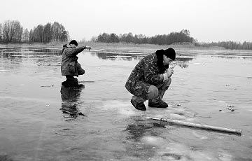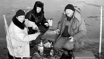 На щастя, ми переконалися, що риба у Дніпрі ще є. Але якщо безлад на водоймах триватиме, скоро її стане критично мало. То тут, то там зустрічали на льоду залишки дешевих сіток китайського виробництва. Ця гидота вільно продається повсюди... Браконьєрська вакханалія ледве стримується нечисленним штатом рибінспекторів. Плюс слабка матеріальна база... Вносять свої лепту у зменшення рибних запасів і офіційні кооперативи рибалок. Вони б і не проти зарибнювати «моря», як це було раніше, але з чого почати — не знають. Аби вирішити проблему, потрібні великі інвестиції, але наш бізнес шукає «проектів» зі швидким прибутком, а народ виживає як може і швидко спустошує природні запаси. Ситуацію вже давно треба вирішувати на загальнонаціональному рівні. До речі, більшість з рибалок, які були поруч, підтвердили, що ловлять не заради кількості — просто отримують задоволення від процесу спілкування з природою. Чимало людей цінують риболовлю за можливість побути наодинці і забути про все. Додому їхали у сутінках. Нас оточував чудовий сосновий ліс з вкраплинами берізок. Жодних звуків цивілізації, лише вітер гуляв високо в кронах дерев. Кілька разів дорогу перетинали козулі, пролітали сови: виявляється люди ще не все винищили в околицях мегаполіса... Отже, основне враження від поїздки: ми дуже далекі від розуміння справжніх цінностей життя. Андрій Гусєв (знімки автора) |