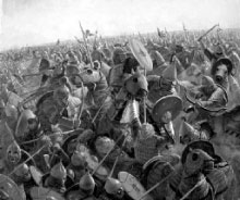 Привид калки![]() У травні 1223 року русичі зазнали фатальної поразки від монголів. Чи можна було її уникнути? Монгольська держава являла собою абсолютну військово-феодальну монархію, організовану за десятинною системою. Уся територія була поділена на округи, які в свою чергу ділилися на «тьми» (з населенням 10 тис. чоловік), «тисячі», «сотні» й «десятки». На чолі цих військово-організаційних підрозділів Чингізхан ставив найбільш відданих представників монгольської знаті — нойонів. Також було впроваджено привілейований суспільний стан, який джерела називають дархан. Дархани звільнялися від податків і повинностей, мали вільний доступ до хана і не каралися за перші дев’ять порушень закону. Було сформовано корпус кешигтенів (гвардійців). Усім своїм перемогам Чингізхан завдячував добре організованій армії. У ХІІІ ст. європейці дуже помилялися, коли вважали, що монгольська армія — це велетенські, відносно некеровані полчища, які досягають перемоги лише чисельністю. Чингізхан зі своїм військом здійснював те, що було не під силу іншим великим завойовникам завдяки тому, що його армія не мала собі рівних у вишколі, організації та дисципліні. Як правило, монгольська армія виявлялася набагато меншою, ніж та, що була виставлена супротивником. Найчисельніше військо Чингізхан збирав під час підкорення Хорезму — 240 тисяч чоловік. Жодна з монгольських армій, що пізніше підкорила Русь і всю Східну та Центральну Європу, не перевищувала 150 тисяч. Монголи перемагали не кількістю, а вмінням воювати. Головне, що вирізняє організацію їхньої армії, — це простота. Монгольське військо складалося, не враховуючи кількох допоміжних підрозділів, виключно з кавалерії. Організація будувалася на основі десятинної системи. Найчисельнішим самостійним підрозділом вважався тумен (або тьма) — 10 тисяч чоловік. Три тумени зазвичай складали армію (чи корпус). Тумен складався із 10 полків (тисяч) по тисячі чоловік. Полки складалися із 10 ескадронів (сотень), в кожному із яких було 10 відділень (десятків). Для того, щоб легше було керувати боєм, загони були в одежі певного кольору, коні в загони підбиралися однієї масті. Приблизно 40 відсотків монгольського війська складала ударна важка кавалерія. Решту, 60 відсотків армії, складала легка кавалерія. У той час, як воїни Європи вели переважно рукопашний бій, то монголи найбільше розвивали бій метальною зброєю і могли вражати на льоту стрілою птаха в небі. У кожного лучника було по два сагайдака зі стрілами; в армійському обозі існував значний запас стріл. Легка кавалерія застосовувалася для розвідки, прикриття і підтримки важкої кавалерії; в її задачу також входило переслідування і добивання залишків розгромленої армії супротивника. У кожного кавалериста був, як мінімум, один запасний кінь. У кожного з них була сорочка з цупкого необробленого шовку; Чингізхан виявив, що такий шовк стріли пробивали рідко, а частіше вминали в рану, і тоді китайські лікарі, що служили монголам, могли витягти їх, просто потягнувши за шовк сорочки. Монгольські вершники були кращими солдатами свого часу; звиклі до втоми, спеки та холоду, вони не потребували ні розкошів, ні вишуканих страв; і навіть поранення майже не впливали на їх боєздатність. Кампанії монголи воліли вести зимові — тоді маневреність і швидкість їхнього війська зростала, тому щ