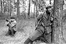 З ким боролися червоні партизани![]() Починаючи з 1943 р. стратегічна обстановка на фронтах Великої Вітчизняної війни змінилася на користь Червоної Армії, розпочався процес звільнення Української землі. Та ворог ще був сильним тому ідеологічна робота в його тилу залишалася актуальною. В значній мірі це було пов’язано ще й з активізацією національно-визвольних змагань, витісненням гітлерівцями частини партизанських загонів за межі республіки, про що наголошувалося в Оперативному плані ЦШПР проведення першочергових заходів щодо посиленню партизанського руху на Україні і новими стратегічними планами командування. Так, 11 січня 1943 р. начальник оперативного відділу полковник Соколов писав: «Маючи вплив на частину українського населення, головним чином, в Західних областях, де тривалий час був відсутній партизанський рух, українські націоналісти… намагаються розповсюдити свій вплив і на інші області України… тепер вони стали на шлях відкритої збройної боротьби з партизанськими загонами». Одним із завдань радянських партизанів мала стати боротьба проти українського самостійницького руху. 10 лютого 1943 р. Начальник ЦШПР Пономаренко підписав накази №№ 0012, 0013 про вихід в нові райони бойових дій Волинського та Ровенського партизанських загонів, в яких ставилося завдання: окрім бойових операцій проти німців, проводити «розкладання поліцейських та націоналістичних формувань, особливо армії націоналістів «Тарас Бульба». Прискіпливішу увагу націоналістичним формуванням стала приділяти радянська влада з весни 1943 р. у зв’язку з утворенням УПА. Збіг у часі розвитку масового партизанського руху і націоналістичних формувань загострило ідеологічну боротьбу на окупованій гітлерівцями території України. Звертає на себе увагу Постанова нелегального ЦК КП(б)У «Про затвердження оперативного плану бойових дій партизанських загонів України на весняно-літній період 1943 р.» від 7 квітня 1943 р. П’ять пунктів документа з 8-ми були цілковито спрямовані в ідеологічному руслі і передбачали посилення, в першу чергу, агітаційно-пропагандистської роботи та системи моральних заохочень бійців, котрі проявили себе в боротьбі з окупантами. Так, у 2-му пункті передбачалася переправлення в Кам’янець-Подільську, Вінницьку, Полтавську, Станіславську, Дрогобицьку, Ізмаїльську та Чернівецьку області уповноважених ЦК КП(б)У і УШПР з групами партійних працівників. Вказувалося на необхідність відправити в тил ворога терміном на 1-2 місяці групу українських письменників, журналістів та кінооператорів. Побіжно пропонувалося додатково переправити партизанам 30 типографій для видання газет і листівок. Наведений документ свідчить про інтенсивну підготовку радянським керівництвом навесні 1943 р. до серйозних операцій в тилу ворога, левовою часткою яких повинна бути ідеологічна складова. Ясність у це питання дещо внесло «Звернення Президії Верховної Ради УРСР Раднаркому УРСР і ЦК КП(б)У до населення окупованих районів України» від 21 травня 1943 р., де разом із закликами до воїнів допоміжних сил вермахту, поліцейських, старост переходити на бік партизанів, давалась розлога характеристика українських самостійницьких формувань, де вони називались бандами. Звідси стає зрозумілим, проти кого, насправді, готувалася масована ідеологічна атака. Питання про взаємос