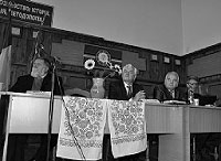 Всеукраїнська науково-практична конференція «Українознавство: історія, теорія, методологія”![]() Українознавство як система наукових знань про Україну і українців є одним із важливих чинників духовного самоусвідомлення нації, формування історичної пам’яті та державного будівництва. В сучасних умовах розвитку наукової думки виникає необхідність аналізу накопиченого фактичного матеріалу і переосмислення підходів до його розуміння з метою відтворення цілісної картини українського наукового процесу. Українознавство як компонент науки і освіти, базуючись на національних традиціях і спадщині минулого, органічно засвоюючи цінності європейської та світової цивілізації, відіграє дедалі більшу роль у динамічних процесах трансформації українського суспільства. Історія формування і становлення українознавства як науки, його розвиток у складних умовах Російської та Австро-Угорської імперій, у добу радянського тоталітаризму, осмислення внеску в цей процес інтелектуальних сил материкової України та діаспори — це важлива й актуальна дослідницька проблема, не вирішена нині на належному рівні. У зв’язку з цим, сьогодні увага науковців прикута до таких проблем як пошук шляхів подальшого формування українського суспільства на засадах національної ідеї, визначення ролі історичних джерел та археологічних наукових розвідок у становленні україністики, формування теоретичної бази українознавчих дисциплін та ін. Саме такі напрями роботи були визначені на Всеукраїнській науково-практичній конференції «Українознавство: історія, теорія, методологія», що проходила 25 листопада у Міжрегіональній Академії управління персоналом. Основною метою конференції стало об’єднання творчих зусиль науковців, викладачів, освітян, громадських діячів довкола вивчення і розширення досвіду виховання національної свідомості особистості як основи подальших перспектив розвитку української державності; популяризація результатів наукових досліджень, які мають вирішальне значення для подальшої прогресивної розбудови вітчизняної українознавчої науки; залучення до плідної співпраці молодих науковців, студентської молоді задля формування гармонійно-розвинутого українського суспільства засобами науки та освіти. Конференція розпочала свою роботу з державного гімну та хвилини мовчання — на вшанування пам’яті тих мільйонів громадян, на які скоротилося народонаселення незалежної України від 1991 р. Окрім цього, на запрошення організаторів конференції виступив хор «Вольниця», виконавши українські народні пісні та нагадавши усім присутнім, що культурна спадщина нашого народу неповторна і варта збереження. Доктор політичних наук, професор, проректор з наукової роботи МАУП Микола Головатий настільки пройнявся співом, що зазначив: «Природа заклала в нас цей спів, щоб ми впізнавали одне одного. А відійде старше покоління і що залишиться для нації? Чи залишиться сама нація? Якщо не будемо докладати зусиль, ми перестанемо бути Україною і країною взагалі, а станемо просто територією». Продовжуючи, Микола Федорович звернувся до присутніх уже з вітальним словом: «Шановне товариство, хочеться привітати вас з тим, що ми зібралися для розмови щодо проблем українознавства. Я зізнаюсь, що як проректор, людина, політолог, який давно займається проблем