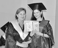 ЗДОБУЛИ ДИПЛОМИ Випускники Українсько-Арабського Інституту міжнародних відносин та лінгвістики імені Аверроеса здобули дипломи про освіту рівня «бакалавр» та «магістр» Днями відбулися урочисті збори, присвячені врученню дипломів випускникам освітньо-кваліфікаційного рівнів «бакалавр» та«магістр» Українсько-Арабського інституту міжнародних відносин та лінгвістики імені Аверроеса. До складу президії увійшли директор Українсько — Арабського інституту міжнародних відносин та лінгвістики імені Аверроеса, доктор педагогічних наук, професор МКА Надія Чернуха, завідувач кафедри менеджменту зовнішньоекономічної діяльності, доктор економічних наук, професор Іван Дахно, заступник завідувача кафедри МЗЕД Ірина Хільчевська, заступник завідуючої кафедри політології, кандидат політичних наук, доцент Ганна Дідух. Першою з вітальним словом до випускників звернулася директор Інституту Надія Миколаївна Чернуха: «Сказати, що ми раді вас бачити — це не сказати нічого! Впродовж чотирьох та п’яти років ми крокували разом з вами та докладали усіх зусиль аби надати якісні знання, такі, яких вимагає сьогодення. А ви, в свою чергу, з користю використовували наші освітні послуги. У кожної людини в житті є знаменні події та дати, дуже вірю та сподіваюся, що однією з таких подій є сьогоднішній урочистий випуск. Дирекція Інституту щаслива від того, що кожен з вас по-своєму гідно пройшов етап життєвої та професійної самореалізації. Хочу висловити надію, що ви не зупинитися на шляху особистого та професійного розвитку, а диплом бакалавра та магістра, отриманий в Академії, допоможе кожному з вас знайти своє місце у житті та на ринку праці». Вже традиційно Іван Іванович Дахно розпочав свою вітальну промову з жарту, приєднавшись до слів привітання директора Інституту, додавши: «Я сподіваюся, що ми-викладачі дали вам хороші знання та хорошу освіту, яка допоможе вам у майбутньому. Освіта на цьому не закінчується, і без сумніву, ви будете продовжувати навчання та збагачувати себе новими знаннями. Зичу вам успіхів та усього найкращого на освітянській та життєвій ниві». До слова запросили заступника завідувача кафедри МЗЕД Ірину Хільчевську: «Кожного разу на таких зустрічах ловиш себе на думці, що це і радісна подія, але і сумна. Тому що за час навчання ми усі встигли звикнути до вас і сподіваємося, що вам було приємно та цікаво приходити на наші заняття. Бо частинка вашого життя пройшла в Академії, і маємо надію, що ви будете згадувати про наш навчальний заклад лише приємні речі. Бажаю вам, щоб ті знання, які ви отримали в наших стінах приносили вам успіх, радість — духовну, матеріальну та моральну». Завершальне слово в плеяді вітальних промов надали заступнику завідуючої кафедри політології, кандидату політичних наук, доценту Ганні Дідух: «Дорогі випускники, я хочу, щоб ви подивилися один на одного і запам’ятали цей блиск у ваших очах. Говорять, що молодість прекрасна, ви усі дуже красиві, молоді, енергійні, у вас багато планів, ідей, життєвих концепцій, і я хочу побажати, щоб цей блиск у ваших очах залишився і через 5, 10, 30 років, коли ви будете приходити до нас у гості. Завжди залишайтеся такими же молодими та красивими, якими ви є зараз. Я вас вітаю з цим успішним етапом у вашому житті і переконана, що усі наступні етапи будуть такими ж успішними». Тради