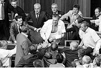 ЧЕРГОВИЙ ЗАМАХ МАНКУРТІВ НА МОВУ![]() Те, що сталося днями в парламенті (маю на увазі бійку депутатів з приводу спроб прийняття одіозного «Закону про мови») не можна опускати до рівня звичайного для багатьох країн світу з’ясування стосунків у вищих представницьких органах. Там, як правило, бійки трапляються на грунті соціальних рішень, які можуть погіршити матеріальне становище тих чи інших груп населення. Подібне спостерігаємо в парламенті Південної Кореї, деяких країнах Латинської Америки. Навіть в Британському парламенті днями стався випадок словесної пікіровки з нетрадиційною для такої зали лексикою. Але у Верховній Раді сталася бійка за принципові речі, на яких будується фундамент єдності України, і принижувати конфлікт до рівня побутової сварки означає маргіналізувати парламент. Я маю на увазі обивательський лемент на кшталт того «як набридли ці депутати» або «фе, як некультурно бити людину в пику». Інколи, дійсно по-іншому довести свою правоту неможливо. А умови для опозиції зараз саме такі: щось логічно довести біло-синій команді у парламенті неможливо, бо вони як манекени голосують лише за вкинуті зверху законопроекти, причому по команді — на рівні рефлексу Павлова. Нагадаємо, що законопроект №9073 «Про основи державної мовної політики» від Ківалова—Колесніченка робить російську мову регіональною у 13 адміністративно-територіальних одиницях України, там де вона для 10% населення є рідною (Дніпропетровська, Донецька, Запорізька, Луганська, Миколаївська, Сумська, Харківська, Херсонська, Чернігівська, АР Крим, Севастополь та Київ). На Закарпатті фактично другою державною стане угорська, а на Буковині — румунська... Телерадіотранслятори зможуть на власний розсуд вирішувати, якою мовою подавати новини. На практиці це означатиме повне домінування російською мови, як «мови міжнаціонального спілкування». Російська і без цих суперпреференцій має колосальний ареал поширення в Україні. І це поширення зумовлене не лише історичним поступом, але й спрямованим лінгвістичним диктатом попередніх 400 років. Це нагадує поєдинок двох різновагових боксерів. Спочатку важковаговик упродовж 11 раундів молотив меншого (якого до того ж тримали за руки), аж раптом у фінальному раунді побитого боксера намагаються зіпнути на ноги і поставити «у рівні умови, щоб перемогла чесна конкуренція». За останнім переписом населення (2001 р.) понад 70 відсотків українців підтвердили свою україномовність. Навіть у Дніпропетровській області таких набралося 50%. Запланований на поточний рік, але перенесений нашими керманичами перепис, очевидно засвідчив би той самий розклад сил. А чи не тому він був скасований? Тепер кинемо погляд на наш теле- і радіоефір, газетні розкладки, книжкові полиці бібліотек, стелажі в книжкових магазинах. Україномовні журнали і газети можна порахувати на пальцях однієї руки, на радіо — українська пісня загнана у теку неформату. Багато ФМ-станцій навіть новини і прогноз погоди уже подають російською. На ТБ українська мова теж поступово витісняється на пізній вечір і навіть ніч. У прайм-таймі неукраїнські власники каналів віддають перевагу в основному російськомовним і російським телешоу. І при цьому нам повідомляють, що це, начебто, диктує попит аудиторії. Хоча ніяких конкретних цифр дослідження «попиту» ніхто ніколи не озву