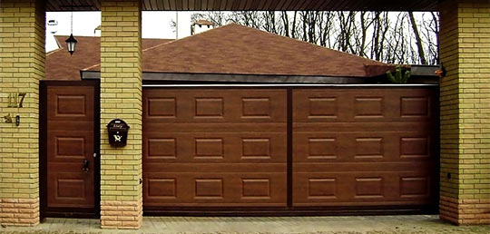 Распашную конструкцию можно применять только при наличии большого двора, размеры которого позволяют свободно закрыть створки при стоящей во дворе машине. Открывать такие ворота на улицу не следует, поскольку это может создать помеху движению пешеходов и проезду транспорта. Открывание может осуществляться вручную или автоматически, с помощью электрического или гидравлического привода. Ручной способ открывания является самым надежным, но автоматический намного удобнее и комфортнее. Автоматическое открывание может происходить при нажатии управляющей кнопки, при помощи пульта дистанционного управления или при приближении автомобиля к воротам через сигнал от установленного датчика. Механический привод может быть линейно червячным, линейно гидравлическим или рычажеым. Конструкция воротВ состав конструкции входят: