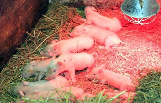 Способи обігріву молодих поросятВласники підсобного господарства часто стикаються з проблемою високого рівня захворюваності молодих поросят. Найчастіше в групі ризику знаходяться тварини до двох тижнів від народження. Після народження у поросяти майже немає щетини, і тонка шкіра не захищена від холодного повітря, яке і є основною причиною високого рівня захворюваності молодняка. Особливо гостро переносять недолік тепла тварини масою менше 500 грам. Добрий господар завжди подбає про систему додаткового обігріву поросят, адже тепла від сухої підстилки недостатньо для захисту цих крихт. Кожен фермер знає про важливість створення теплої сухої підстилки - найчастіше використовується звичайна солома або тирса. Оскільки у свиней є вроджений інстинкт рити землю для отримання мінералів, комах і личинок, підстилку слід робити якомога більш пишною і пухкою. Зариваючись в неї, порося може створити навколо себе досить високу температуру, майже до 28°С. Однак тварини не весь час знаходяться в підстилці, ось чому їм обов'язково потрібен додатковий обігрів. У прямій залежності від того, як утримуються тварини знаходяться приріст і, відповідно, прибуток. Необхідний не тільки правильний підбір раціону, але і певні умови їх утримання. Головну роль в цьому відіграють показники температури і вологості. Найкращими умовами навколишнього середовища для свиней вважаються ті, при яких тваринам не потрібно витрачати енергію на збереження необхідних температурних параметрів тіла. Недолік тепла провокує перевитрату кормових ресурсів, а надмірна температура призводить до відсутності апетиту. Тому вибір способу обігріву на свинокомплексі грає першорядну роль. Нормальна температура для свиноматки складає близько 15°С, в той час як новонародженому поросяті потрібно мінімум 30°С. Опускати температуру в свинарнику до 18°С можна тільки після досягнення виводком місячного віку. Розглянемо найпопулярніші системи опалення в свинарнику з молодими поросятами.